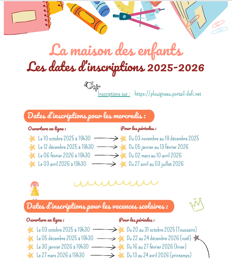 Le planning des vacances de la toussaint est en ligne et les inscriptions seront disponibles à partir du jeudi 09/10 à 19h30.