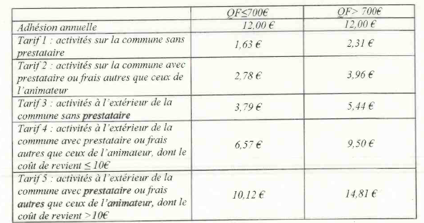Tarifs