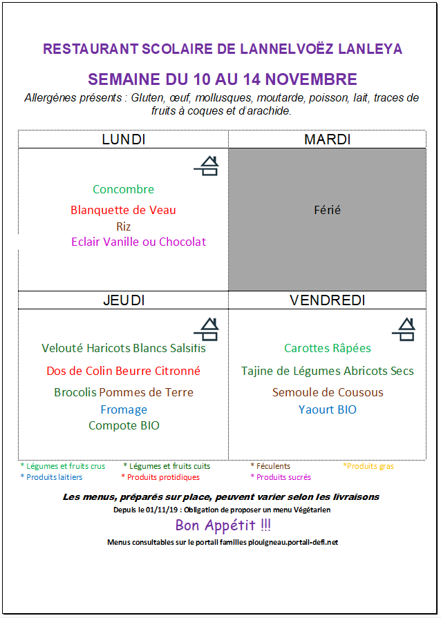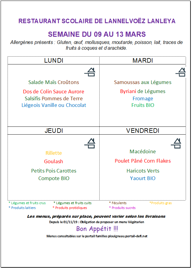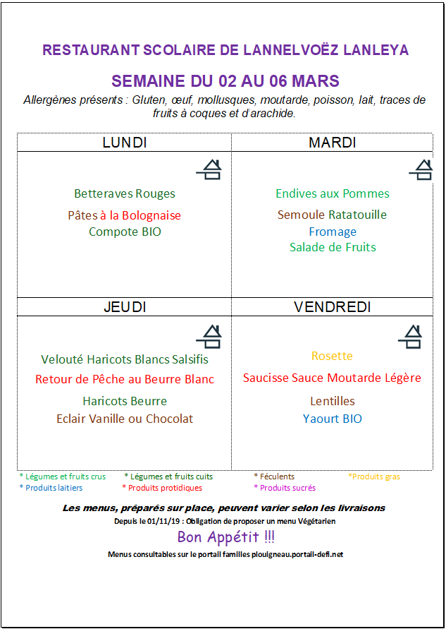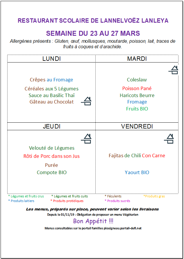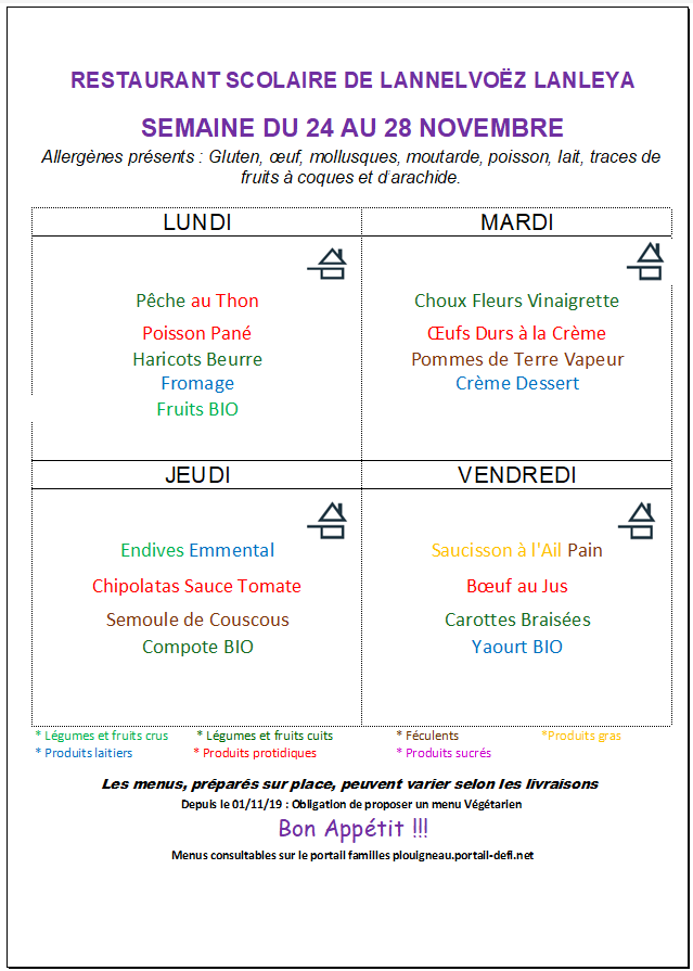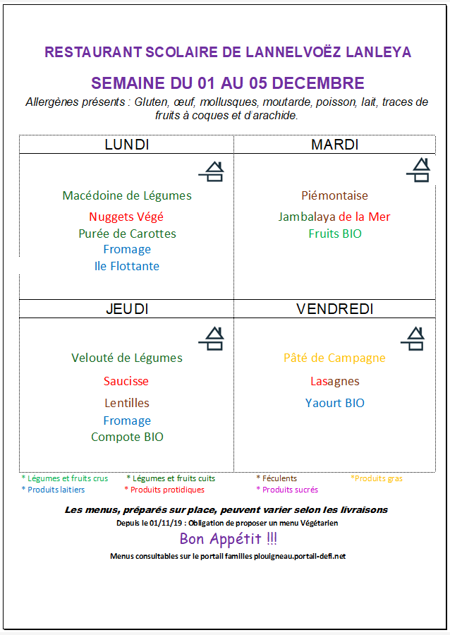 Menus cantine de Lannelvoez