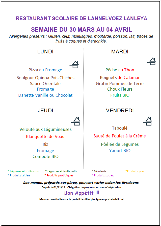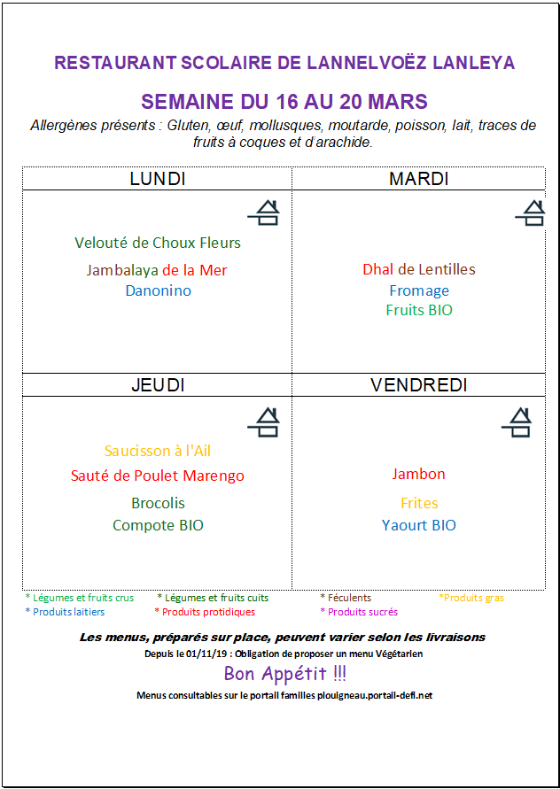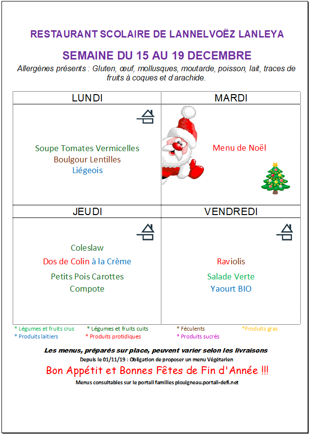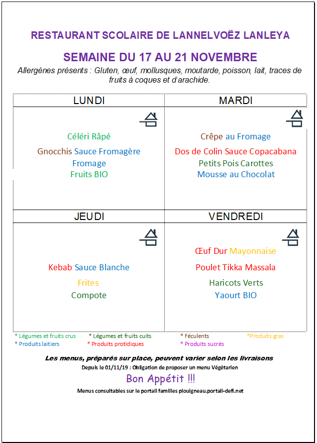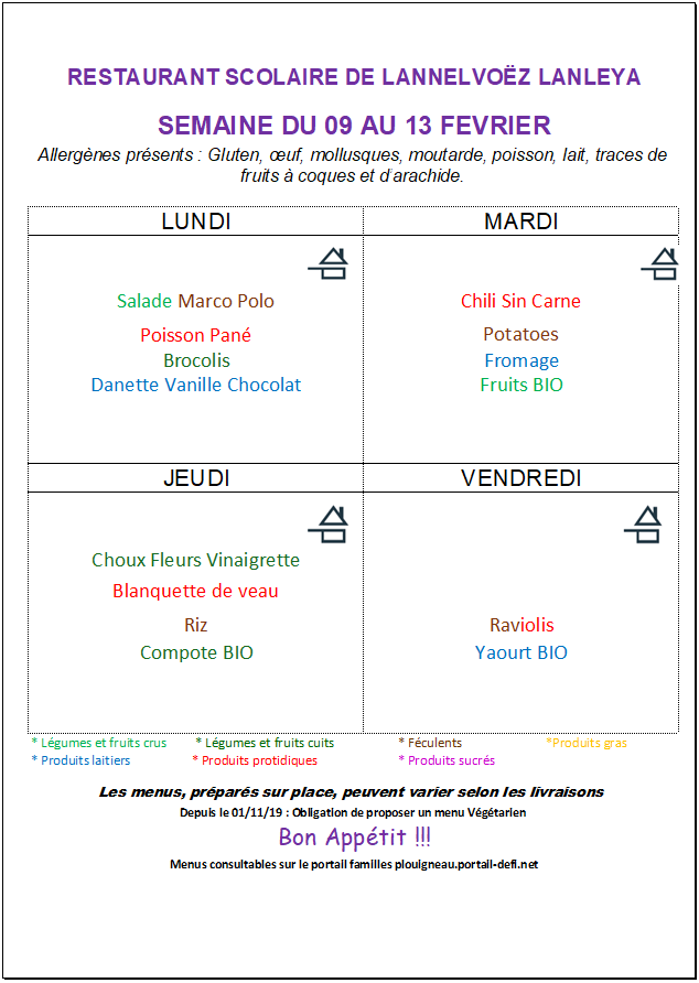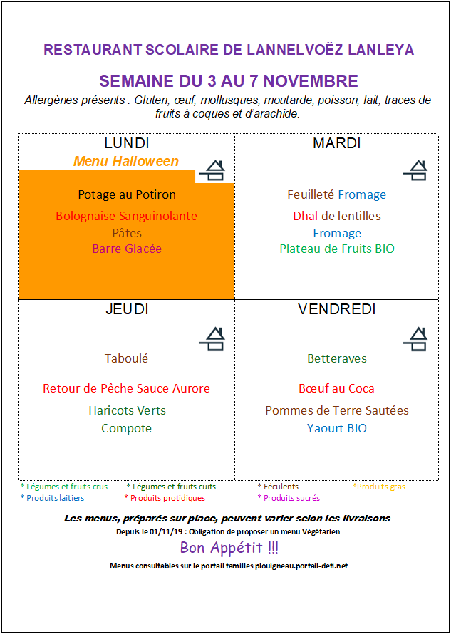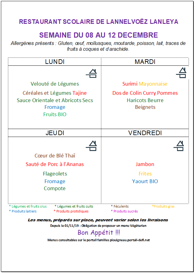 Menus cantine de Lannelvoez